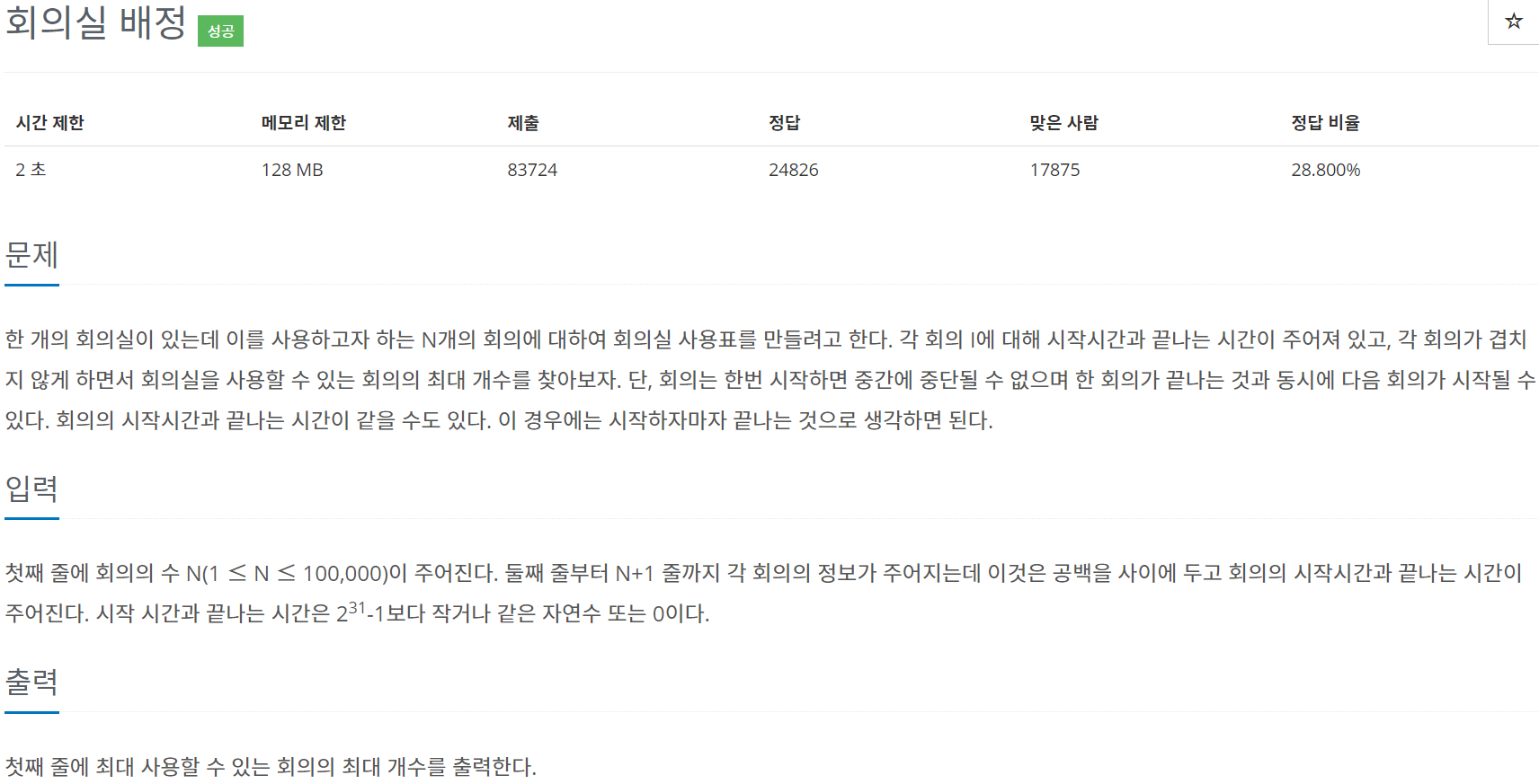 끝나는 시간, 시작 하는 시간 기준으로 정렬 후, 시간 하는 시간이 전의 끝나는 시간 이후면 count.